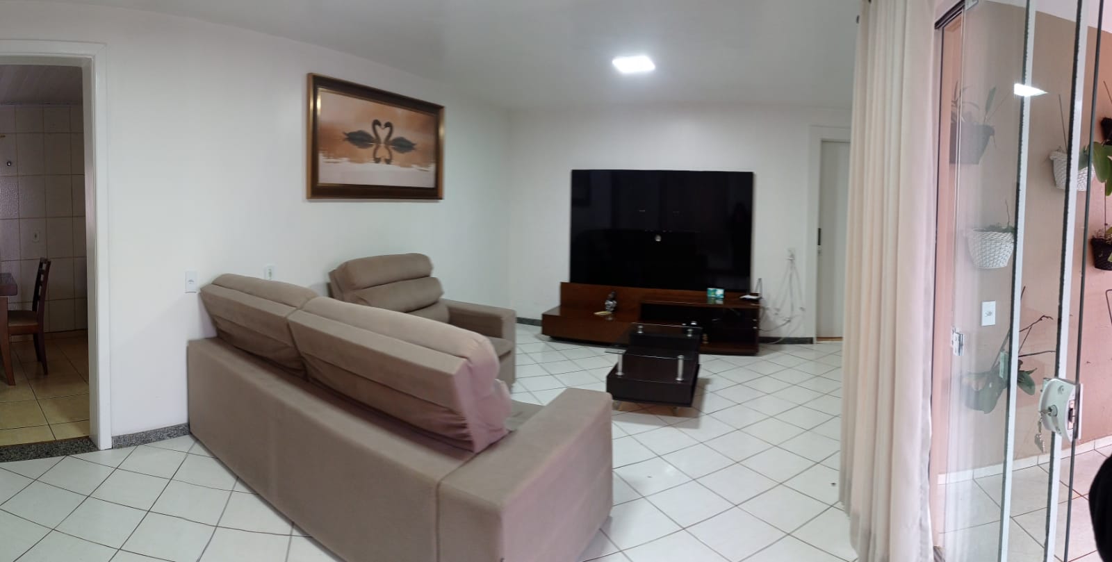 Dispõe de três dormitórios, dois banheiros, três salas, uma cozinha, uma área de serviço, uma sacada, varanda e uma garagem coberta.
