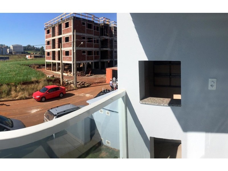 Dispõe de dois dormitórios, um banheiro social, sala, cozinha, área de serviço, sacada aberta com churrasqueira e uma vaga de garagem.